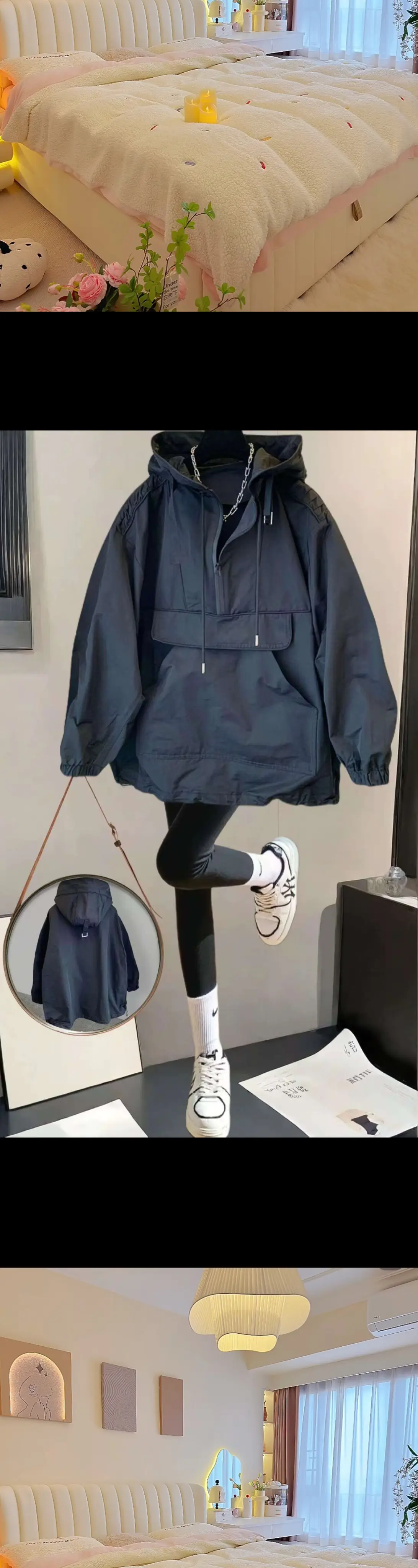 爱惨了这件又酷又飒的冲锋衣!简直是春秋穿搭的神!就是这件韩系纯色...