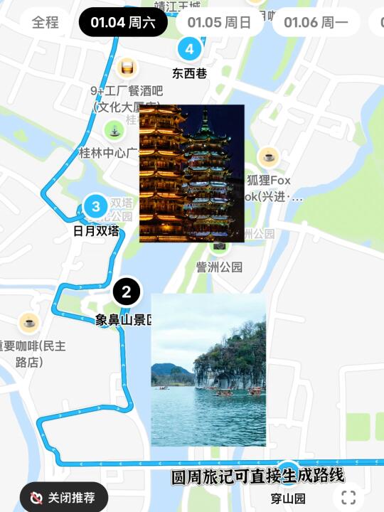 第1️⃣天:象鼻山➡️东西巷➡️日月双塔