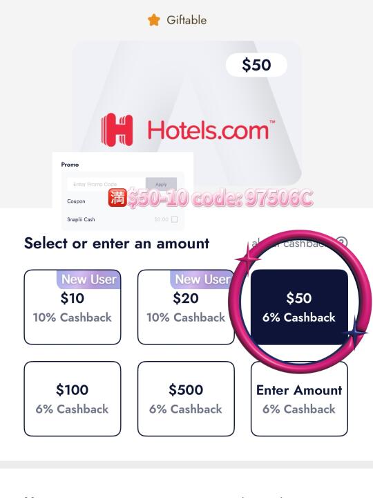 ✅ 先在Snaplii 购买$1000的Hotels.com礼品卡,立即返$100 Snaplii Cash 💎