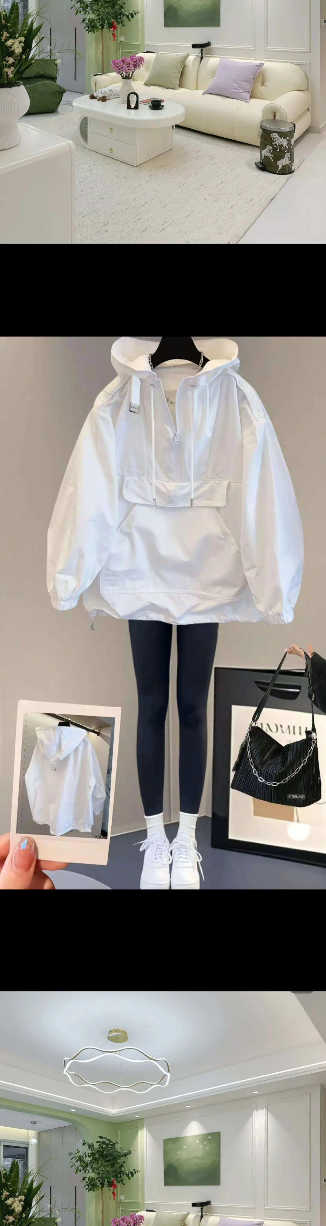 爱惨了这件又酷又飒的冲锋衣!简直是春秋穿搭的神! 就是这件韩系纯色连帽冲锋衣,工装和休闲风结合得恰到好处,穿上身,潮流感直接拉满,走在街上,路人的目光全被你吸引!连帽设计超有范儿,防风又随性,拼接工艺精致感十足,让纯色也能大放异彩。 运动达人放心冲!它透气性能超厉害,跑步、登山,再怎么大汗淋漓都不会觉得闷热。而且还是男女同款,和对象一起穿,拍照发圈直接原地封神!