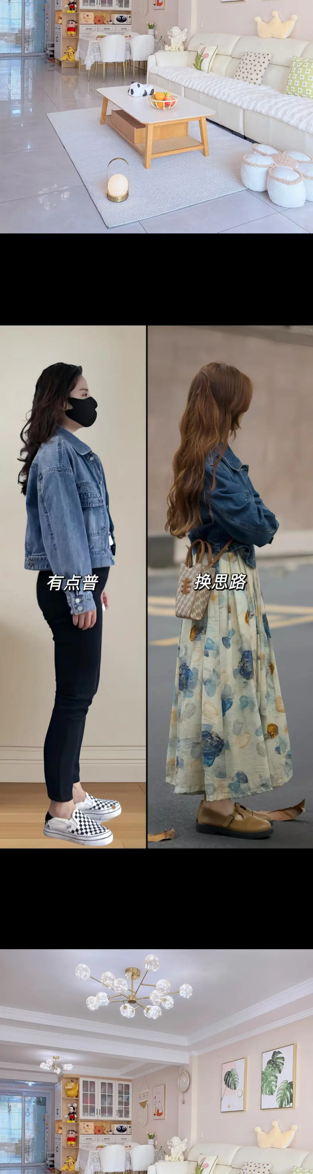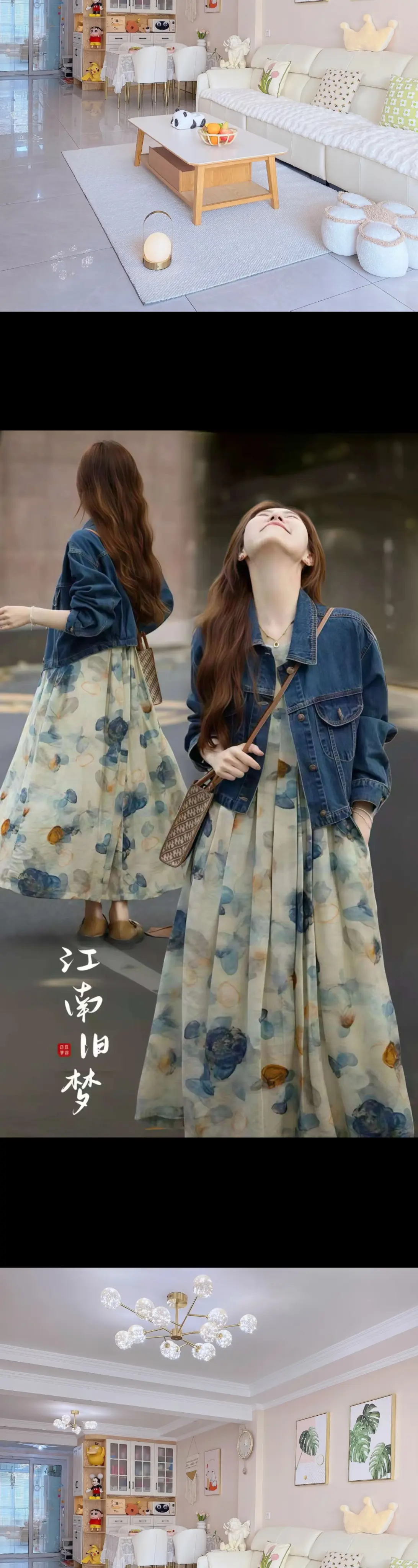 时髦早春就这么穿!时尚牛仔外套+高级感减龄油画碎花连衣裙,不会出错的穿...