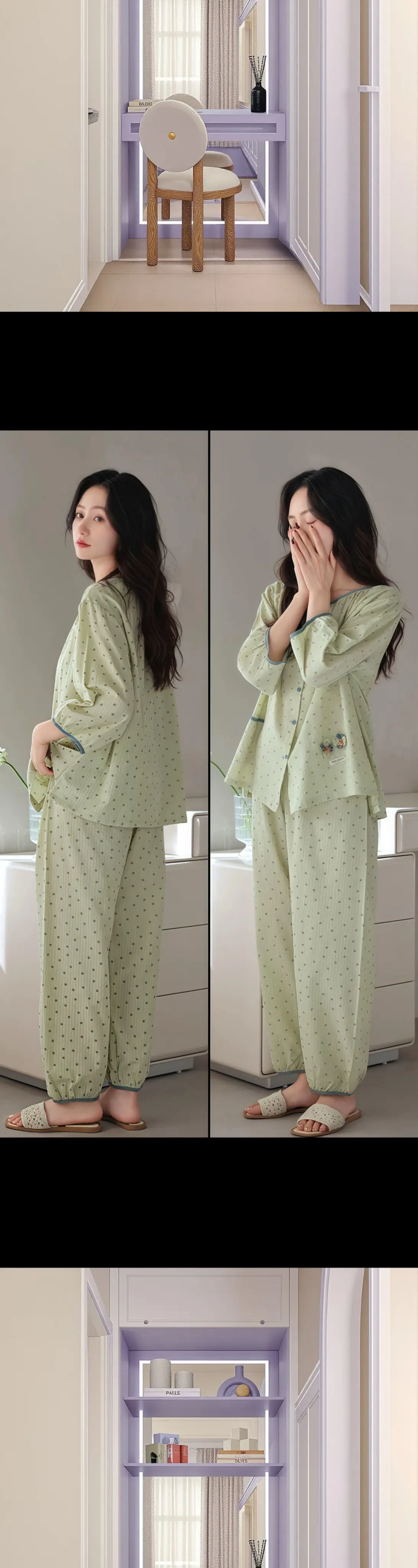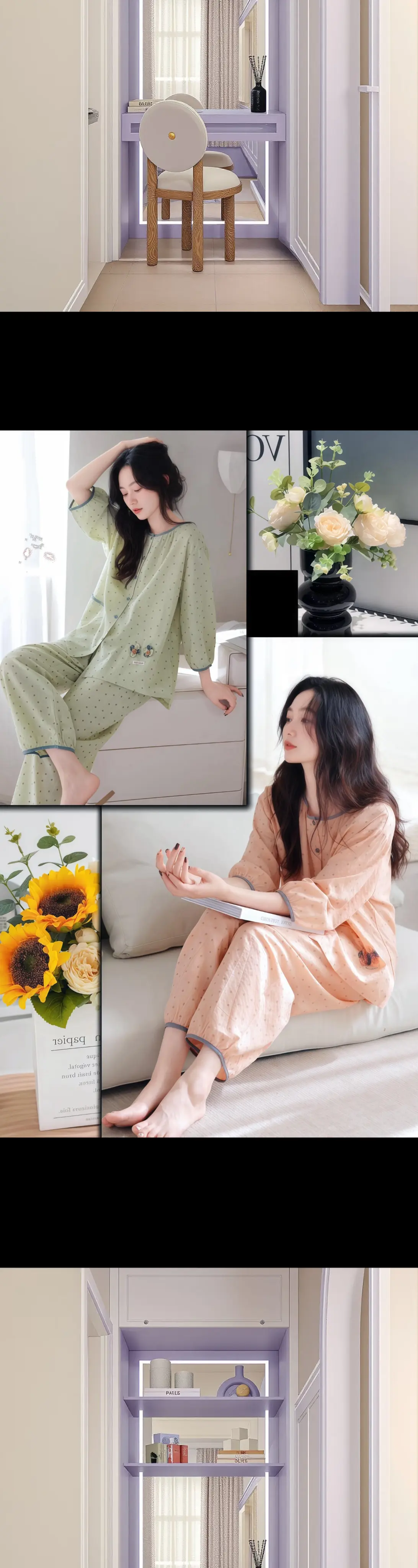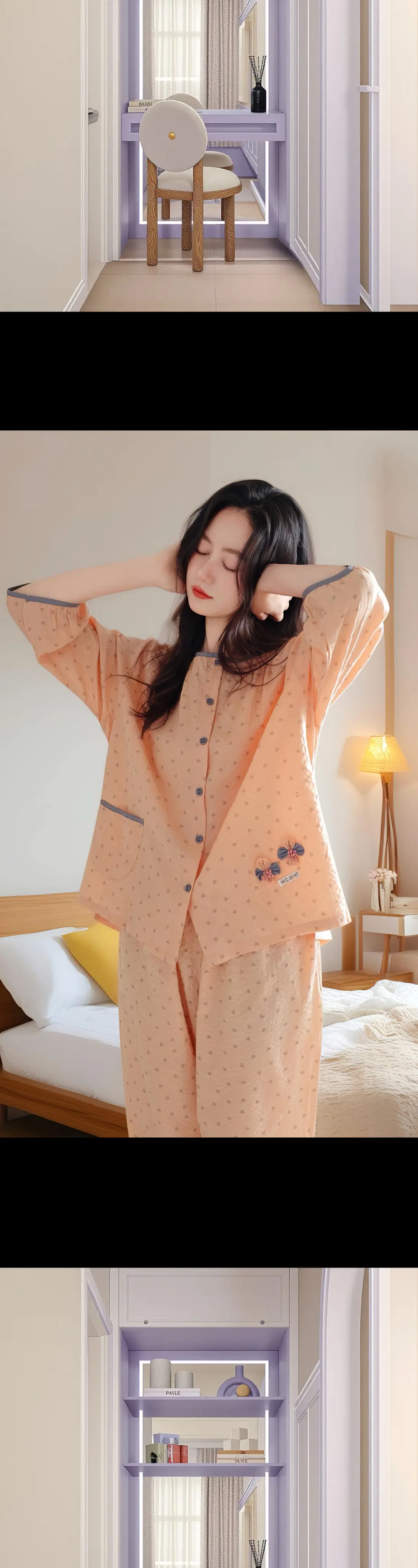 美宝们,我不允许还有人不知道浪莎2025新款睡衣!宽松的版型一上身,一整天的疲惫都被赶跑。七分袖的设计超贴心,春秋穿刚刚好,夏天在空调房也不怕着凉。面料亲肤透气,贴身穿舒服到不想脱