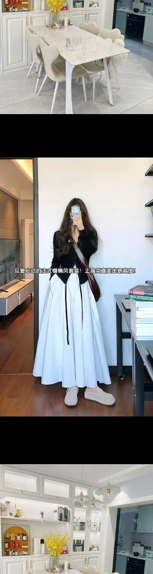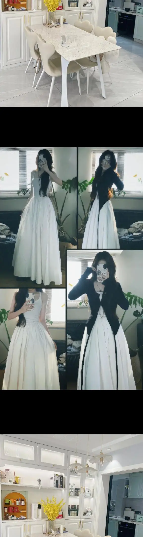 这款温柔法式慵懒风套装直接把我瘦没了!白色背心连衣裙超显瘦,温柔气质拉满,单穿纯欲感拉满,搭黑色开衫,更藏肉显瘦,简约时髦,随性慵懒轻松拿捏。面料亲肤不勒闷,不挑身材不挑年龄,可穿到 200 斤~!