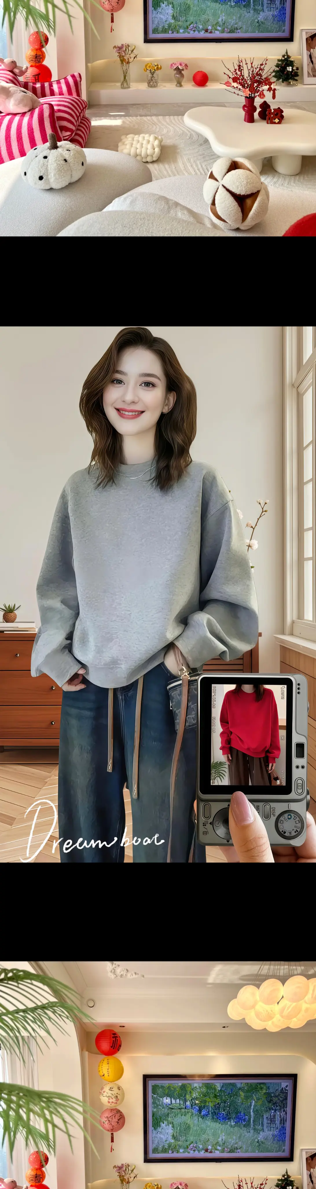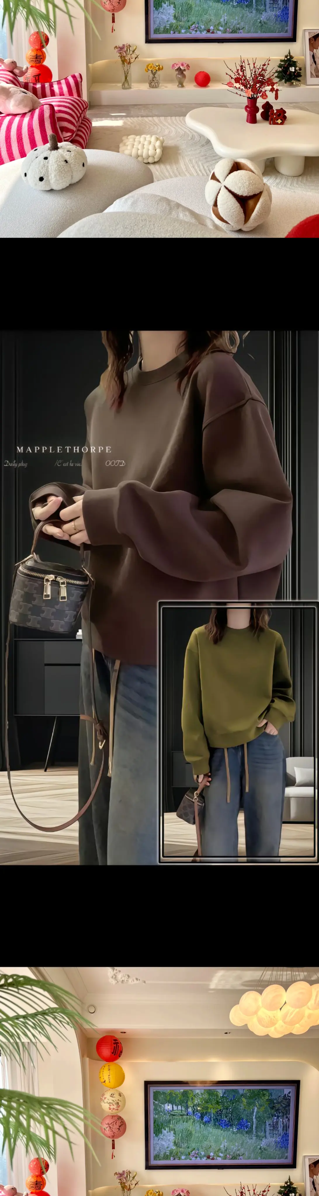 休闲减龄穿搭 这款卫衣内里加绒保暖舒适~不显臃肿,穿上给人的感觉随性松驰感~版型宽松~长度刚刚好~遮肉显瘦~
