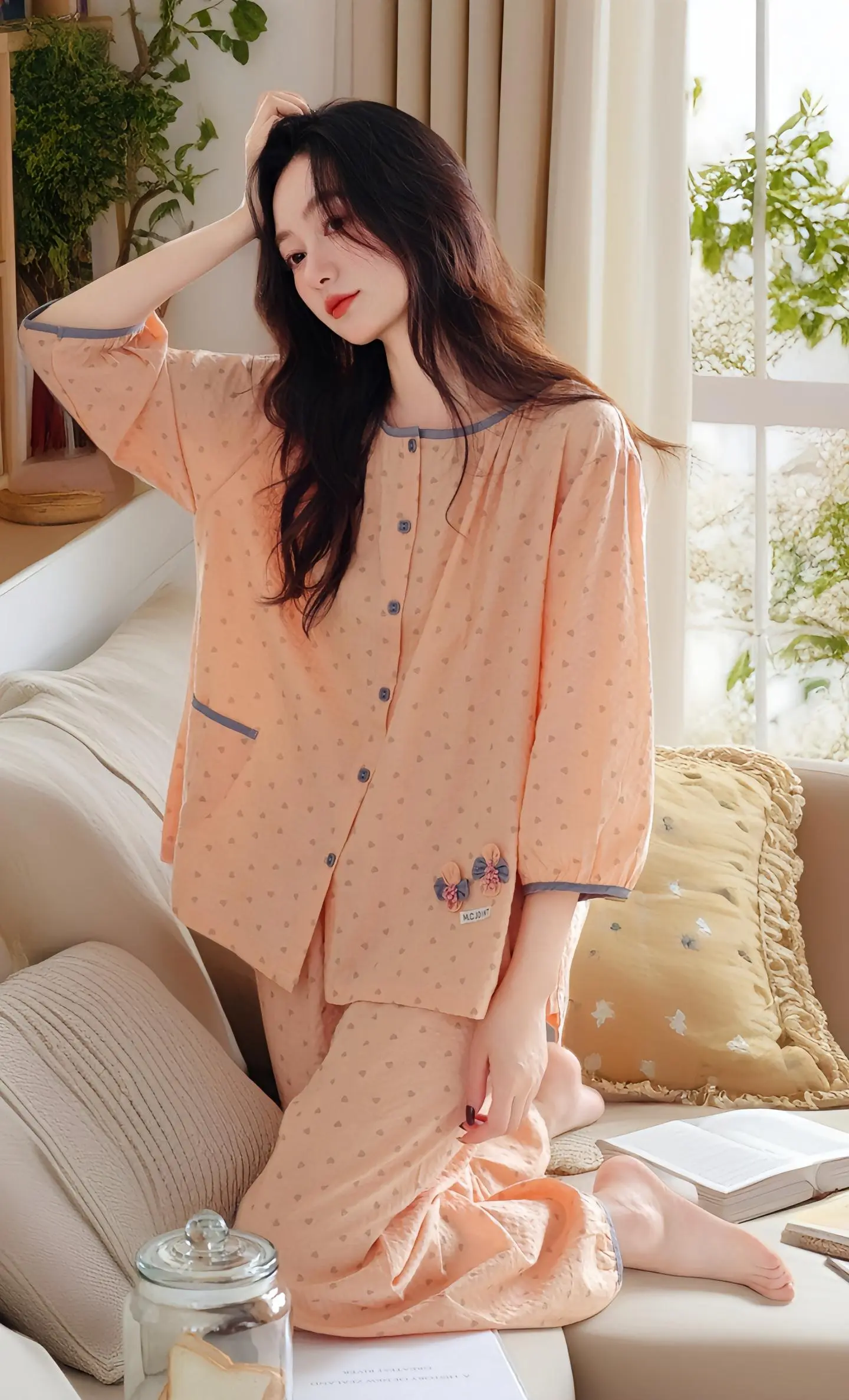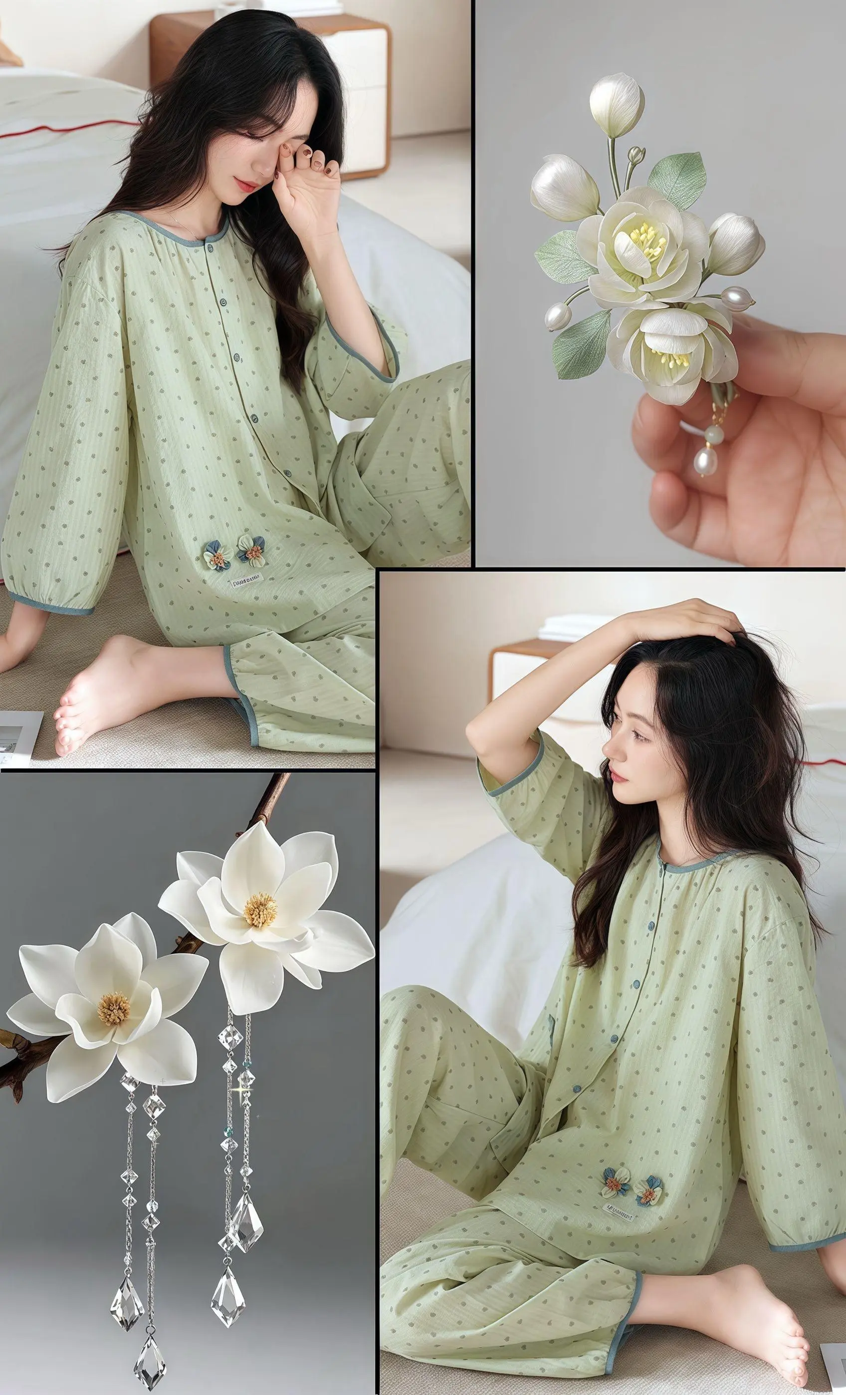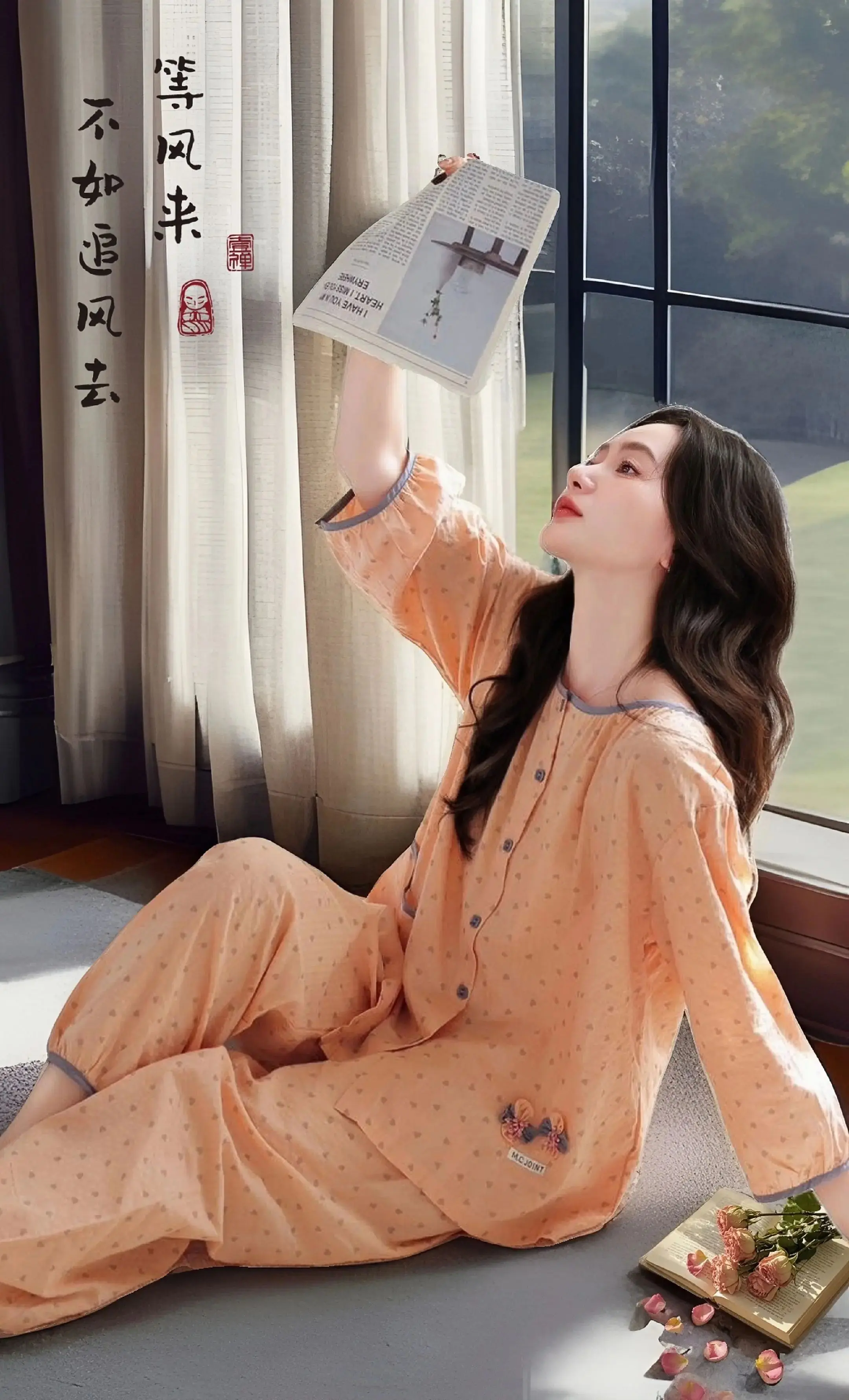 美宝们,我不允许还有人不知道浪莎2025新款睡衣!宽松的版型一上身,一整天的疲惫都被赶跑。七分袖的设计超贴心,春秋穿刚刚好,夏天在空调房也不怕着凉。面料亲肤透气,贴身穿舒服到不想脱