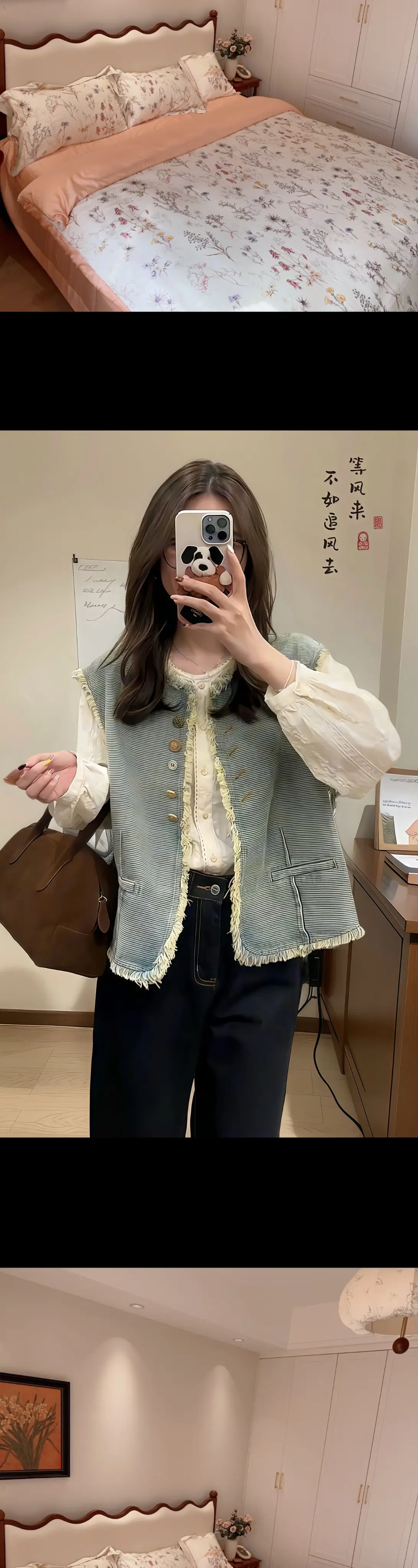 春天好适合叠穿~打工人的欧若风穿搭 春日衬衫保姆级穿搭教程 想好春天该怎么穿了吗 2025春季新款休闲气质套装女来啦~宽松长袖衬衫➕复古牛仔马甲➕高腰阔腿裤子~三件套上身好韩好显瘦! 🎀宽松长袖衬衫舒适又自在,复古牛仔马甲超有韵味!中午单穿,早晚叠穿,随意切换搭配!