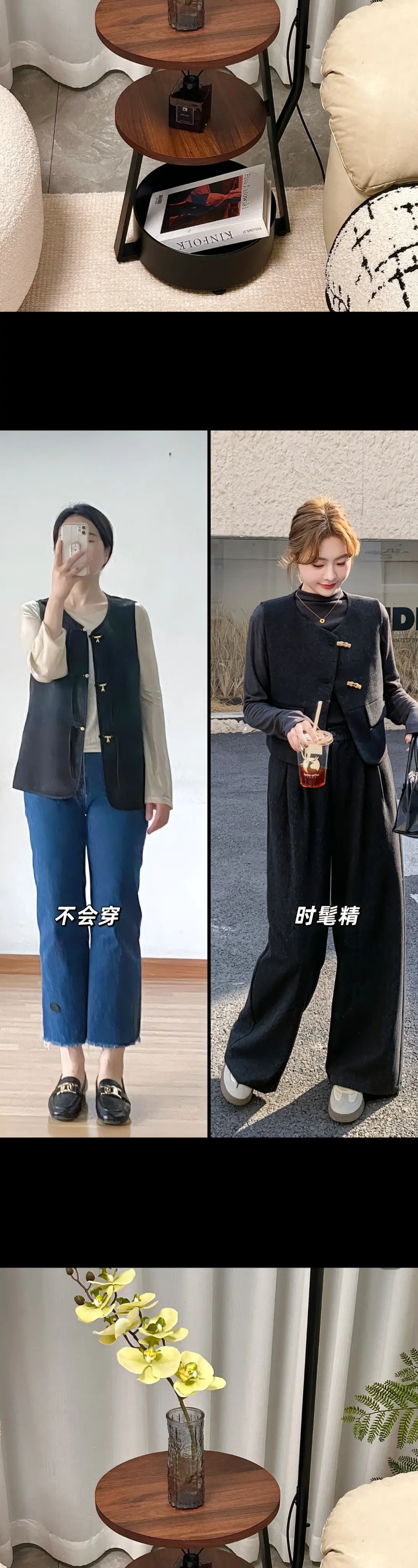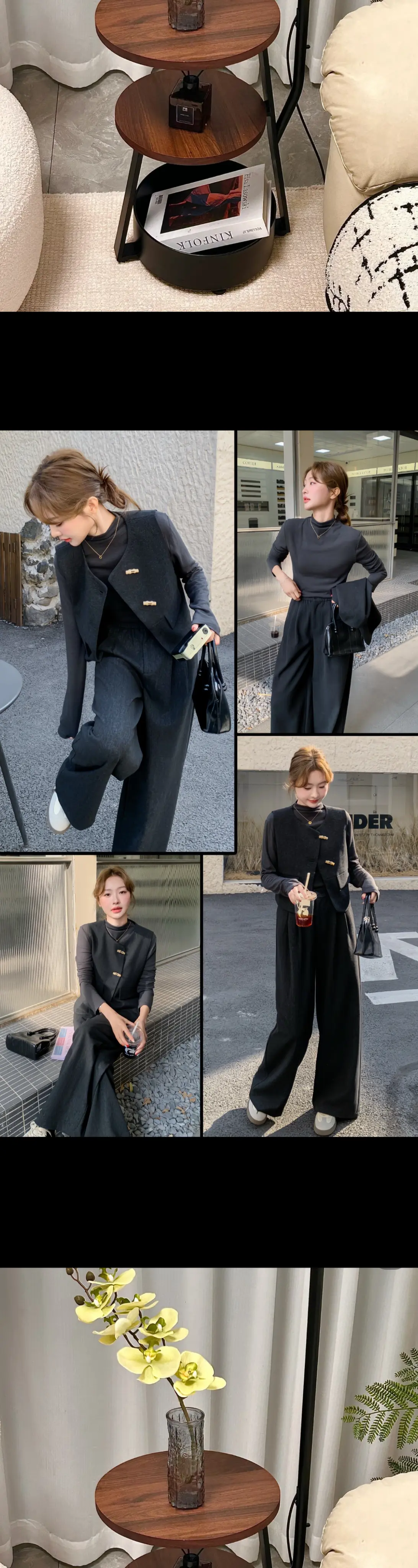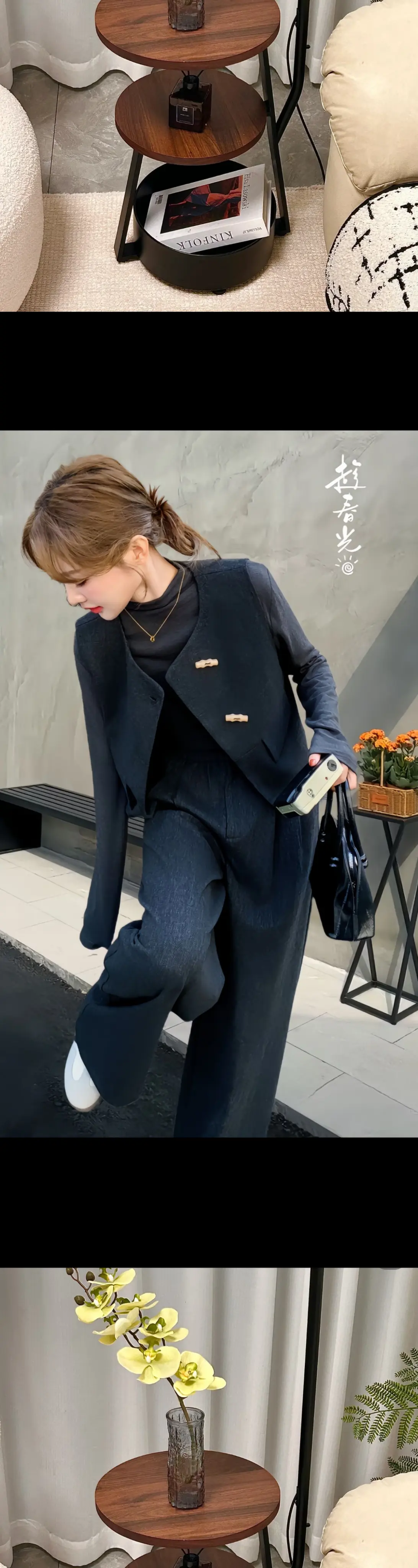 早春ootd🖤高智感气质显瘦套装~极简的尽头就是格雷系穿搭 啊啊啊谁懂,这套穿搭简直美得让人心动!韩系设计感马甲与打底衫的巧妙搭配,再加上同色系阔腿裤的加持,简直是显瘦又高阶的组合。穿上它,你仿佛沉浸在慵懒的风情中,感受那份特有的松弛感。这身装扮既遮肉又显瘦,轻松展现出你的身材优势