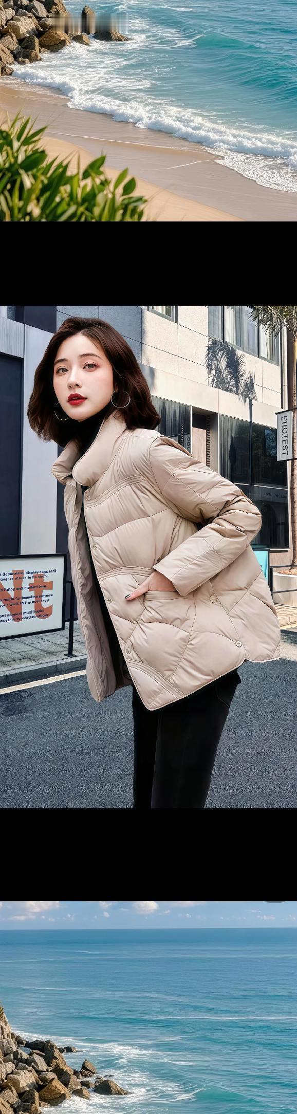 创作灵感 这款新登场的高端轻薄羽绒服,就是你的不二之选,堪称时尚抗风神器。 作为本季弄潮儿们望眼欲穿的新品,设计上那叫一个诚意满满。短款剪裁干净利落,轻松拿捏潮流风向,上身秒变时髦精,让你的穿搭瞬间活力四射。 内里精选高品质白鸭绒,这些“冬日小精灵”蓬松又柔软,细密交织出超强保暖结界。穿上它,暖意汹涌来袭,身体却毫无负担,仿佛一头扎进了春天的怀抱。 而且,它超贴心,完全不挑年龄、身材,从青春少女到优雅熟龄,从纤瘦星人到微胖佳人,统统适配。洋气、减龄、百搭,集所有优点于一身。!