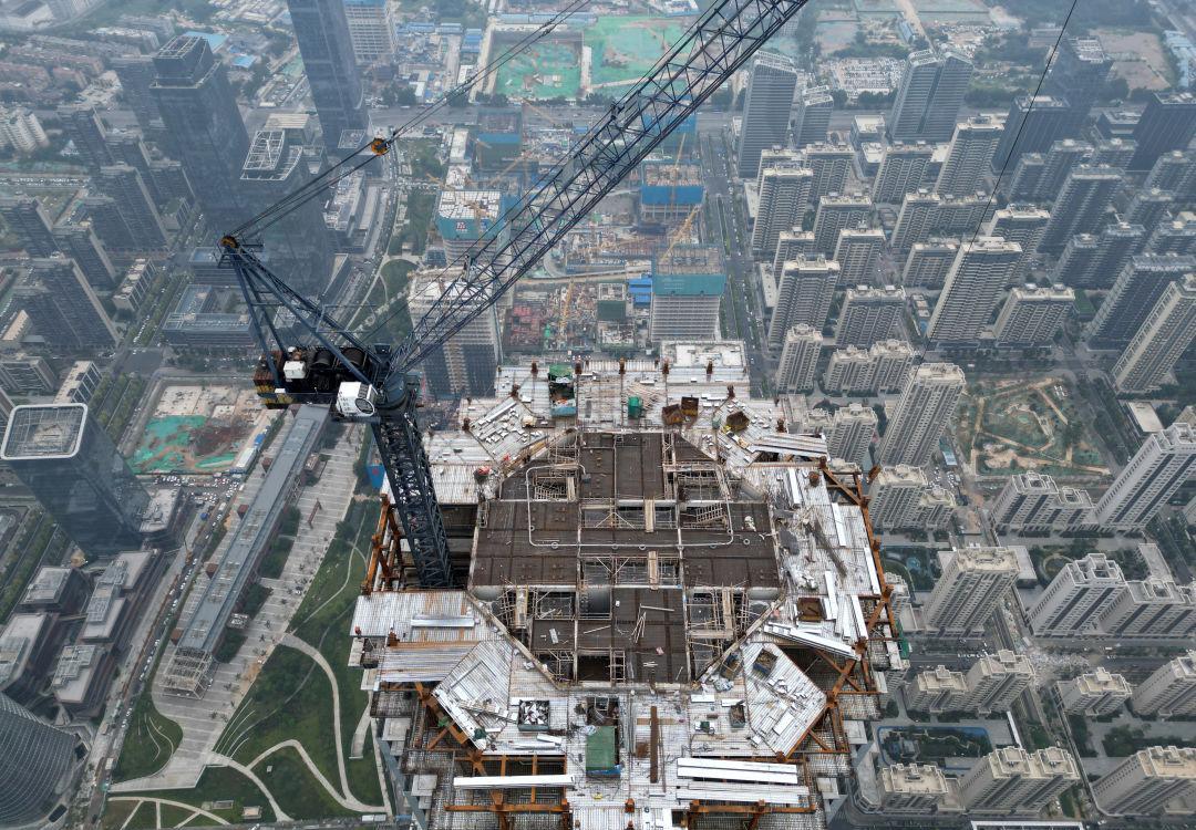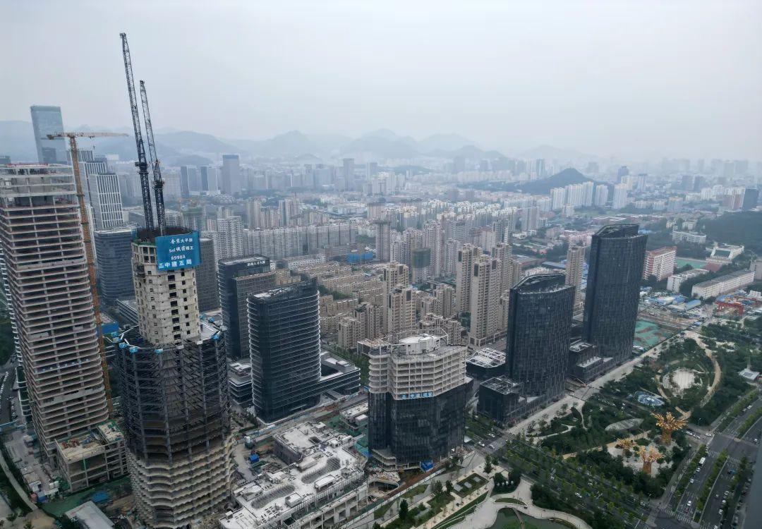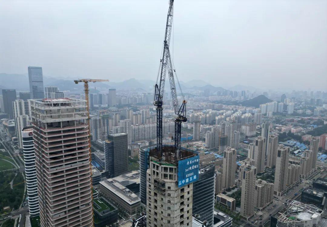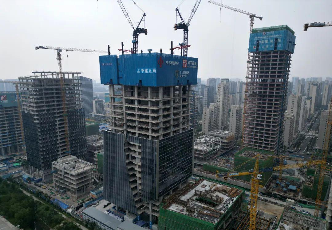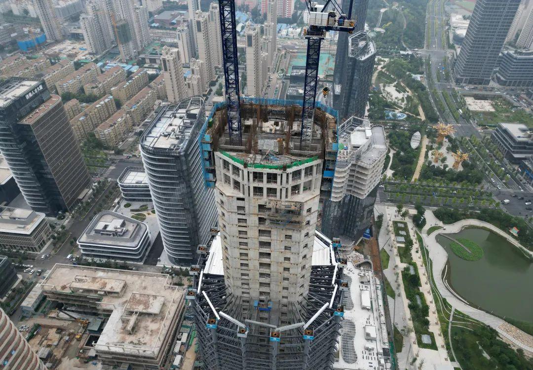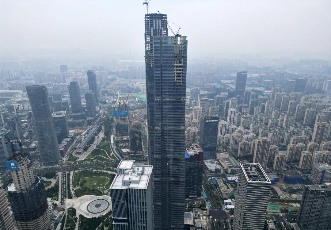 济南信泰中心,地上64层,总高度326米,在五座标志性超高层建筑“山、泉、湖、河、城”之中代表“城”,“五指山”第三高楼,济南第四高楼。目前主楼建设至25层左右,当前高度约120米左右;副楼已封顶;两座塔楼同步进行外立面施工。
