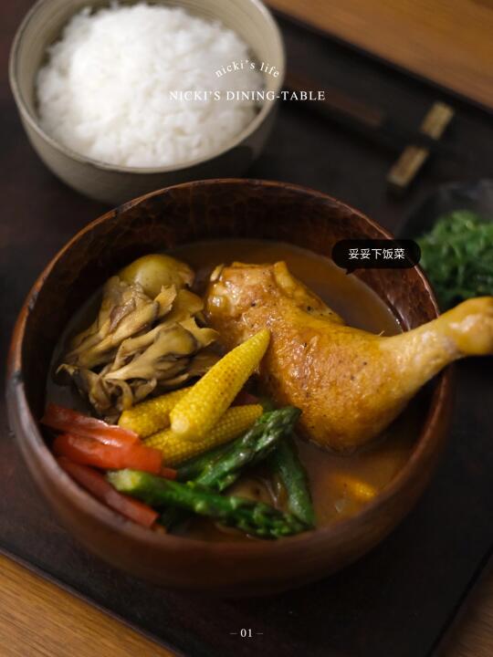 一个人在家吃饭,更偏爱做日式家庭料理,有荤有素,简单精致、但也足够丰盛。北海道咖喱的食材比较灵活,可以根据季节,变换时令食材。