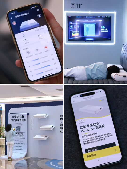 在工作人员指引下我们都测量了智慧枕,第一次看到手机扫码就能测出合适枕头高度,感觉很新奇,这下知道家里的枕头合不合适
