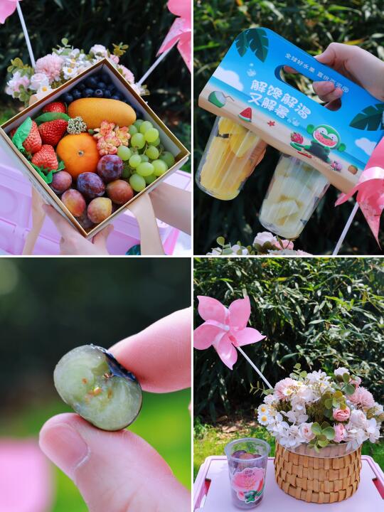 这周带然然来堤角公园碰到《百果园》在樱花坡开设的摊位,不得不夸赞百果园的春游小礼盒,造型真的好可爱 两个水果手提杯,一个蝴蝶结绑带的小礼盒,看到这么可爱心情倍增呀!