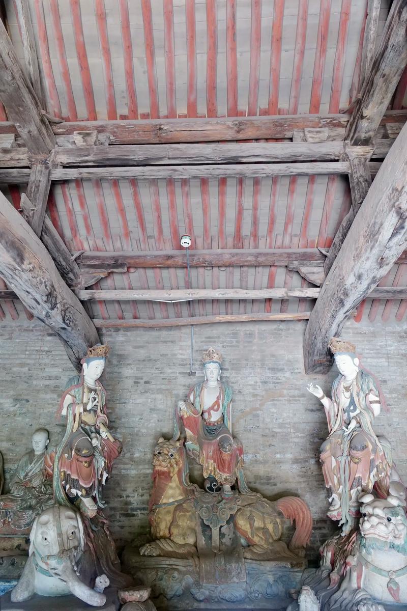 木构玄机:大殿为北宋元丰二年(1079年)原构,斗拱用“偷心造”与“计心造”混搭(早期木构特征),梁架倾斜度5.7°(抗震设计);柱础藏“辟邪铁符”(刻北斗七星纹),与《营造法式》“厌胜术”记载吻合。
