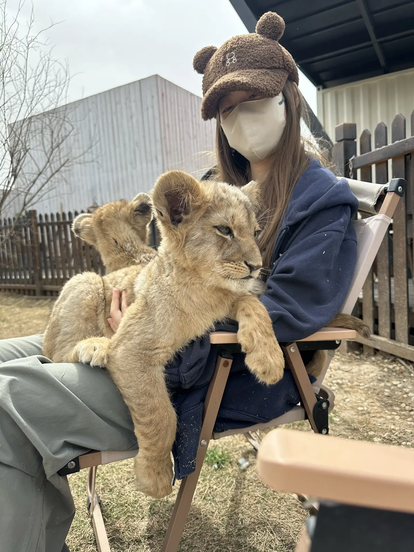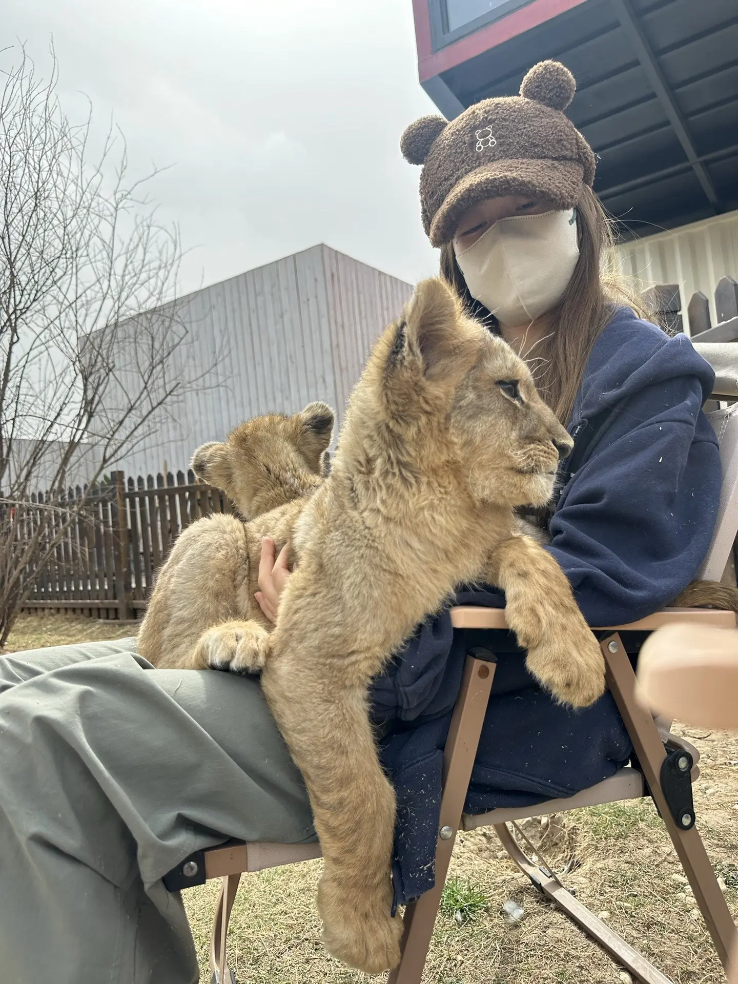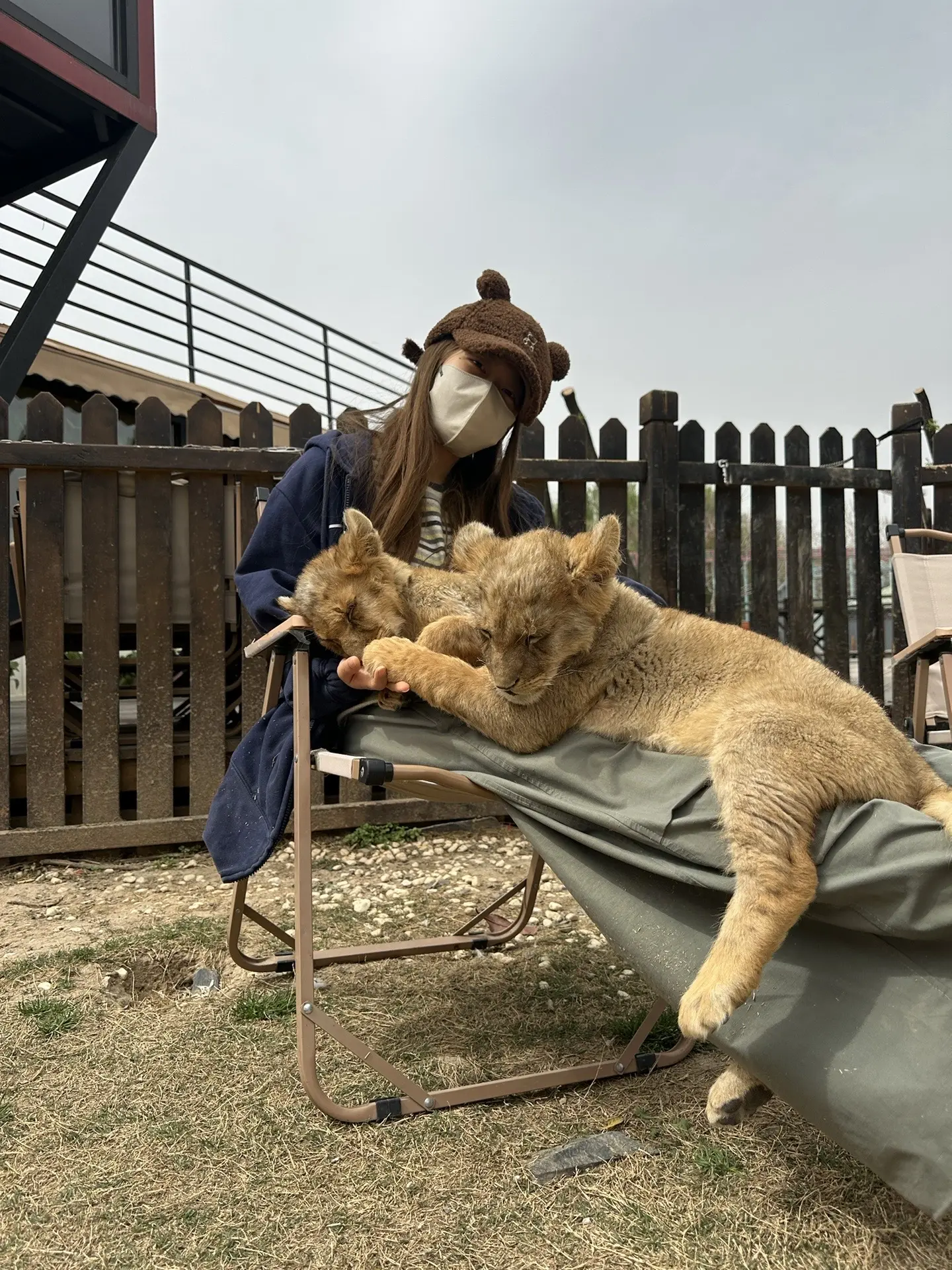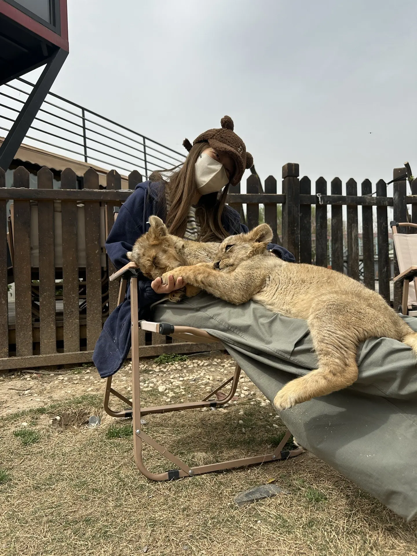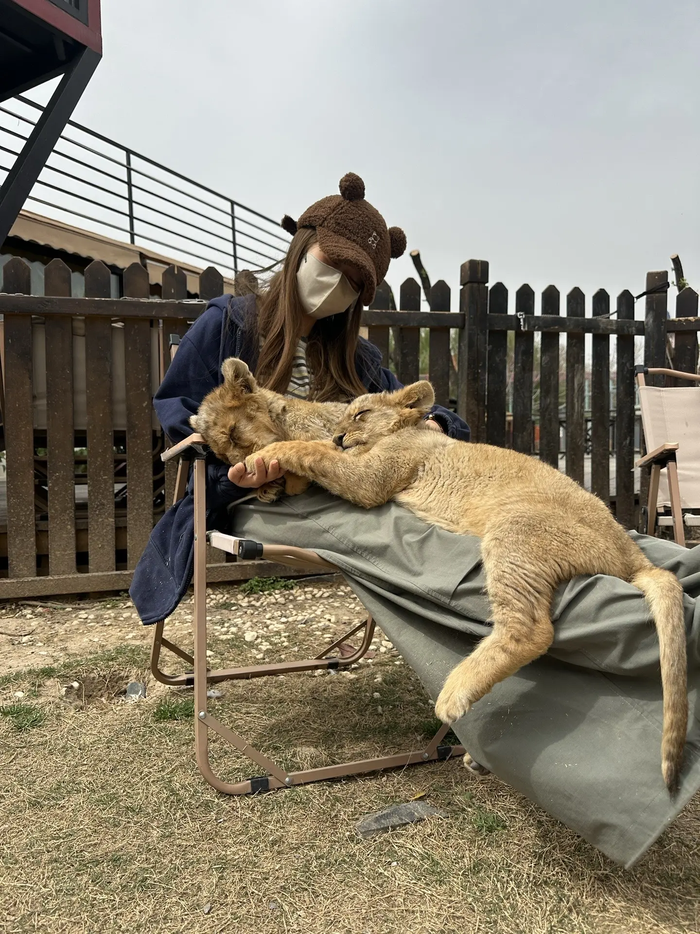 小熊🐻美女与野兽🦁。爱在小熊姐姐身上睡觉的小狮子🦁
