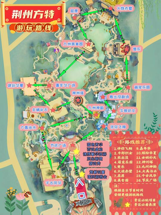 🎭演出:节庆广场观状元出巡,十二花神演出🎭,晚上的花神巡游,百花盛宴歌舞表演,《凤出荆楚》光影秀!千万不要错过七彩流星瀑布烟花🎆!