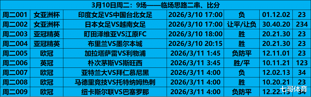 昨日赛事前瞻复盘,前瞻思路7✔5,临场思路无啦,平没了。