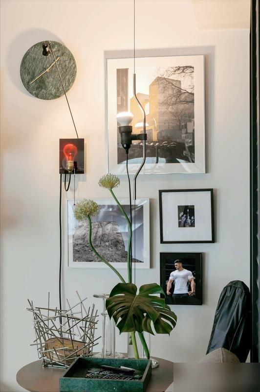 健身的人爱照镜子很正常,但他把镜子当装饰用,既提醒自己保持状态,又把小客厅“撑”大了一圈——这小心思比买十个网红摆件都强!墙面的木架子没做满墙,就摆点书和小摆件,错落着放,比整整齐齐的“样板间风”有生气多了。