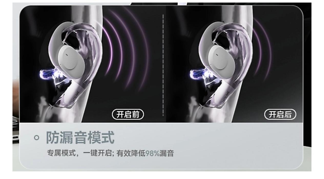 防漏音设计是开放式耳机的必备核心,也是很多人选购后体验不佳的主要原因。开放式的听音方式本就容易出现声音外泄,要是防漏音做得不到位,公共场合使用时,不仅自己的听音内容容易被旁人听到,还会打扰到身边人,十分影响使用体验。所以挑选时一定要认准带有专属防漏音技术的机型,这类设计能有效抑制声音外泄,让公共场合的使用更得体,也能更好地保护听音隐私。(比如虹觅的防漏音模式和华为的逆声场技术)