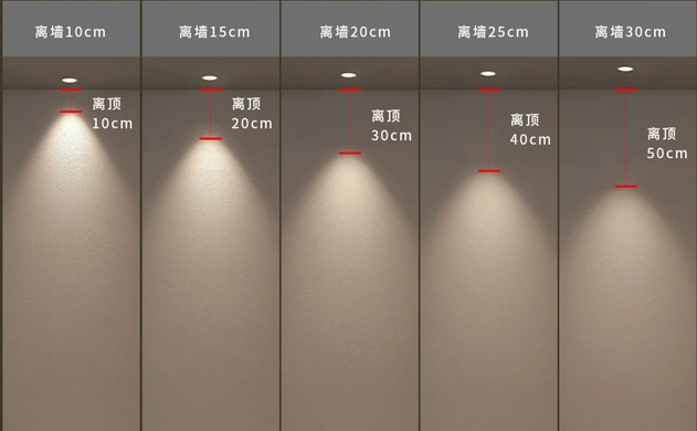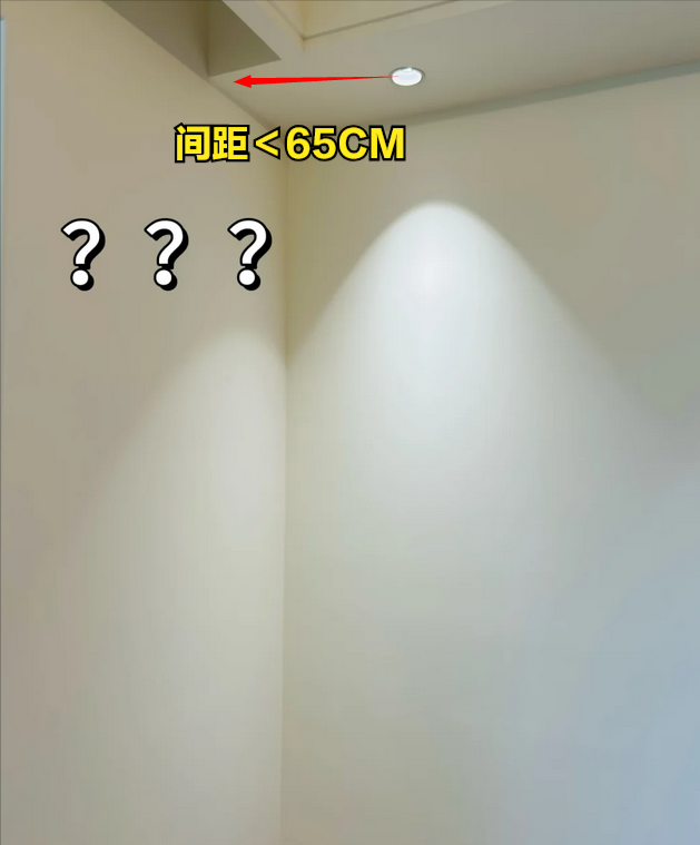 比如一面4米的墙,装3个射灯,间距一米,结果最左离墙30公分,左右光斑都是半个,特别难看,很多人就是忽略了边缘距离,导致最后效果不好。