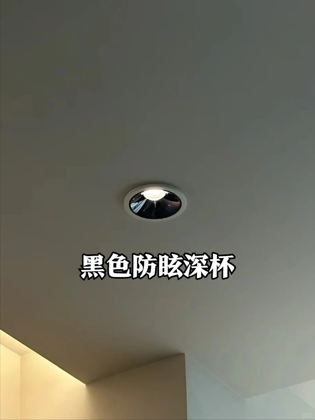 黑色杯体的防眩效果比白色好很多,白色杯体从侧面能看到发光点,而黑色杯体把光源藏得更深,你坐在沙发上抬头,几乎看不到灯珠,只有柔和的光线打到墙上,不会刺眼。