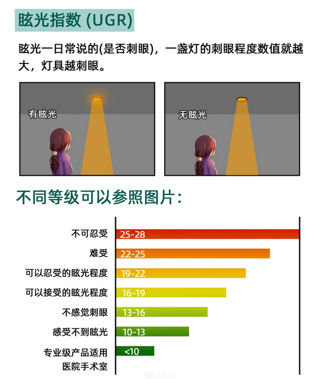 家里用的话,射灯UGR(眩光指数) 要小于19,黑色深杯基本能达标,白色浅杯就容易超标。