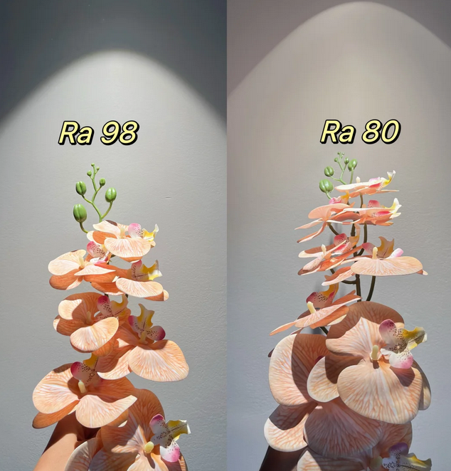 比如说,家里墙刷的奶茶色,要是用显色指数80的射灯照,墙就会偏黄,看着像脏了一样。