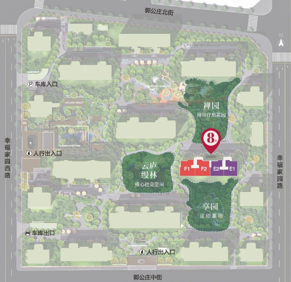 从社区布局来看,8#楼拥有“三面环景”的优势,北侧推窗即见禅园,南侧直面享园,西侧眺望中心景观,云庐缦林。四季皆有不同景致,让窗外的风景随季节流转。此外,8#楼南向奢阔的楼间距,不仅彻底避免了“楼望楼”的压抑感,更让每一层都能拥有充足的采光时间。