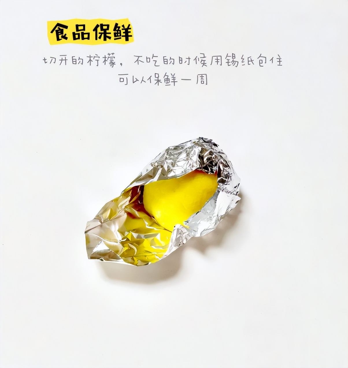 还可以用来帮助食物保鲜,切开的水果,直接用锡纸包裹起来,要比直接放着能延长保鲜时间。