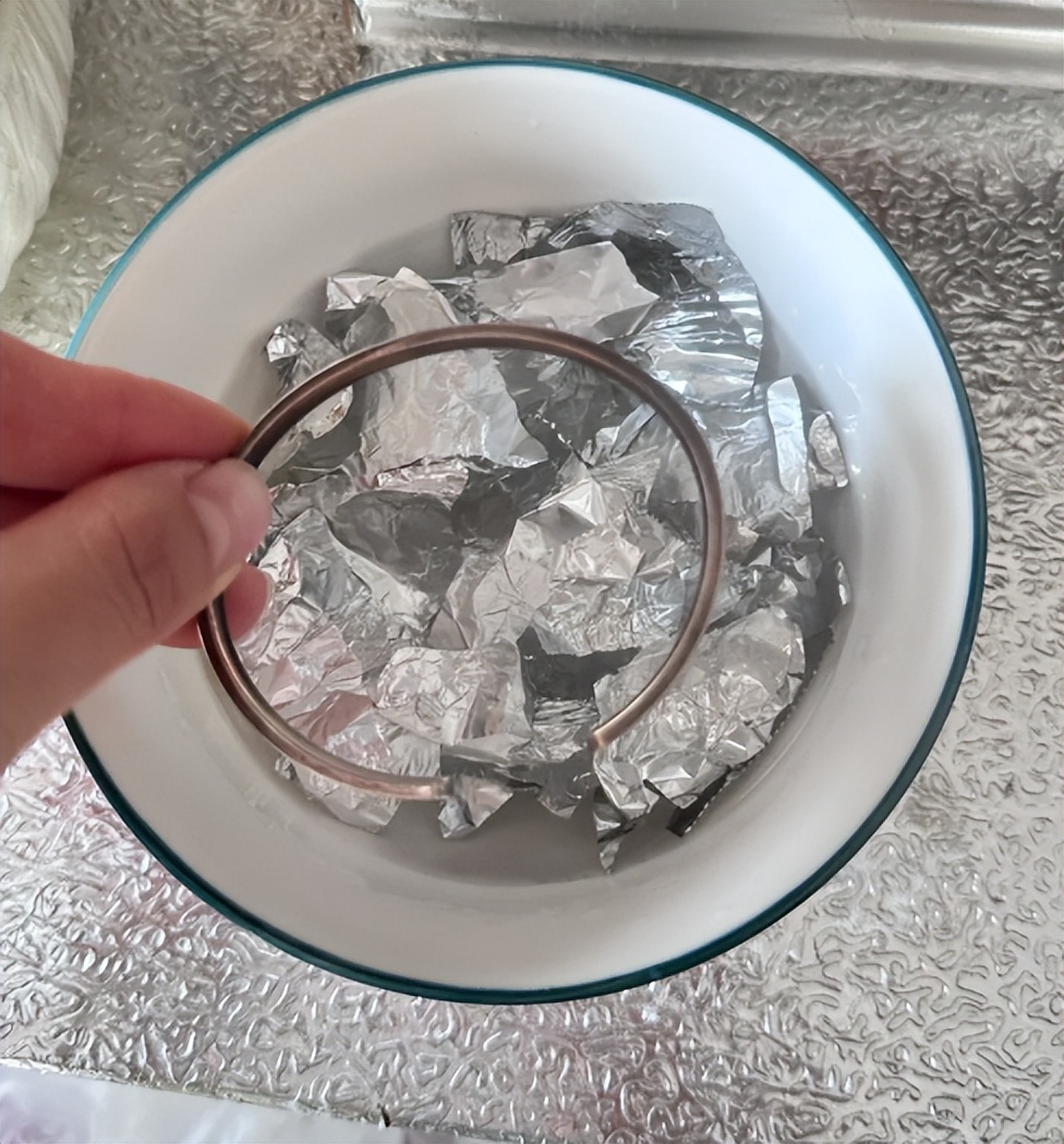 只需要用家里的锡纸,就可以把银饰清洁干净,在清水里面放上锡纸,再把银饰放进去。