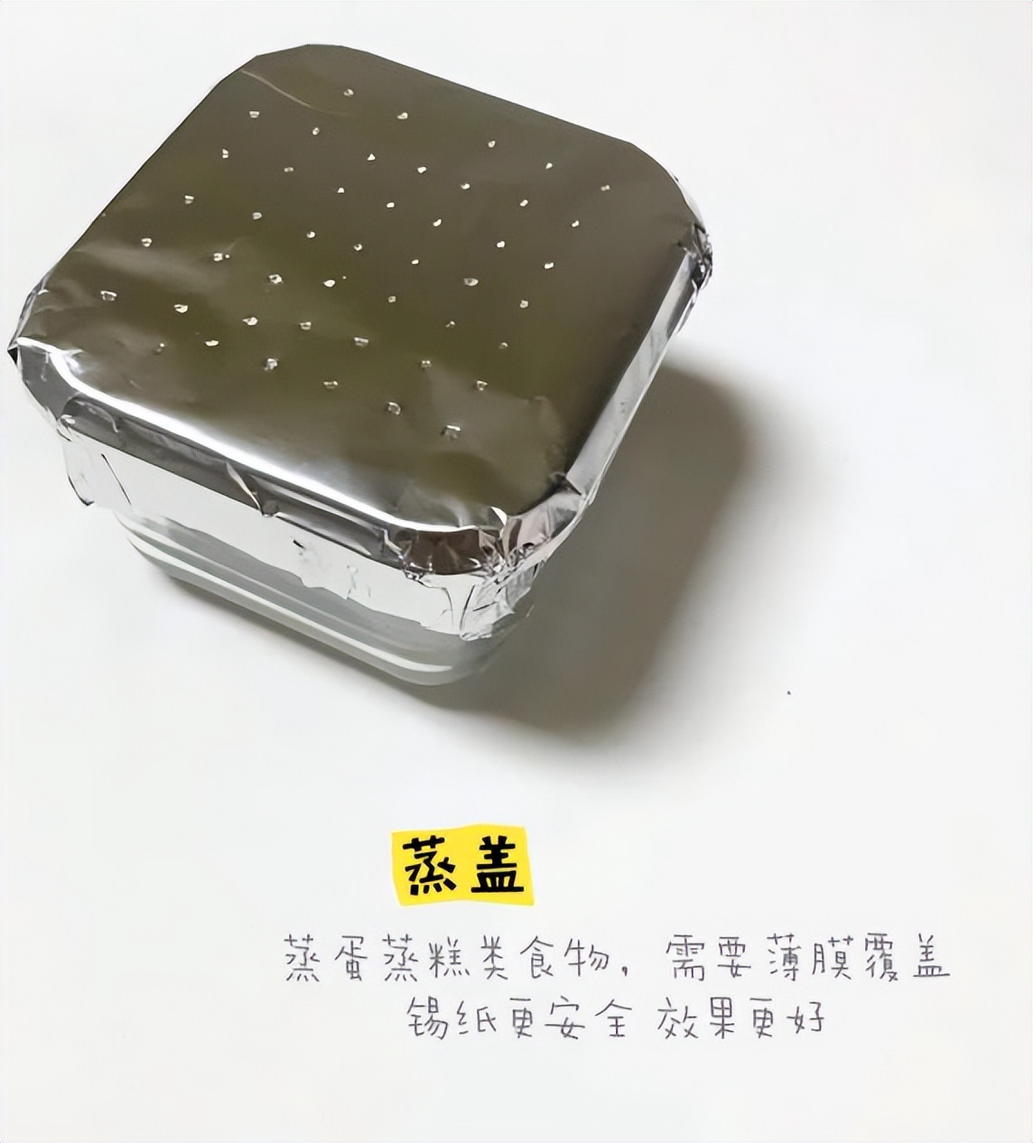 或者蒸食物的时候,在碗里面放上食材之后,用锡纸盖在碗上,在上面戳几个孔,蒸东西很方便。