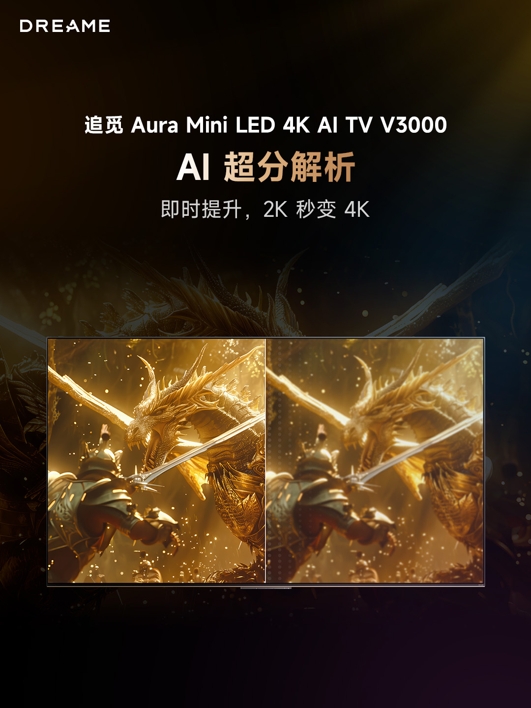 AI,让画质因场景而变。当你打开体育赛事,V3000的AI画质引擎瞬间识别场景,通过300Hz超高刷新率与5.3ms低延迟,让每一个进球都丝滑无拖影;而在播放电影大片时,它能将2K画质AI优化至接近4K,配合2800nits峰值亮度,还原导演眼中的每一个光影细节 。