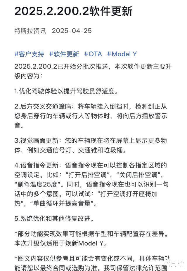 特斯拉最近又搞事情了,给焕新Model Y推送了最新的2025.2.200.2版本软件更新。