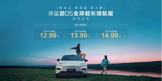 2025年8月1日,长安汽车新央企的第一款新产品,深蓝 S05 620km 全球超长续航版隆重上市,新车仅12.99万元起,却有五大亮点。
