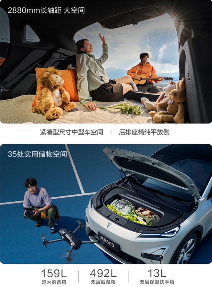 空气动力学车身设计,黄金分割体态,风阻系数低至0.25Cd,高速续航里程累计提升16%。