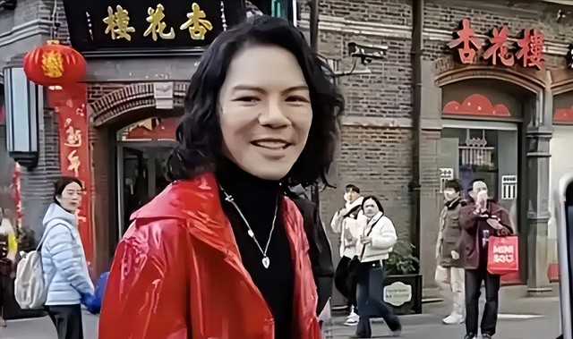 他男扮女装,出现在了上海的街头。
