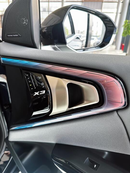 精致的内饰设计,搭配高级真皮座椅与全景天窗,让车内空间尽显优雅格调。智能互联驾驶座舱、12.3英寸中控大屏与Harman Kardon音响系统,为你带来视听盛宴。无论是独自驰骋,还是与家人同行,X3都能让旅途充满愉悦与品质。