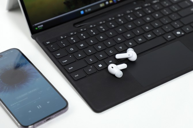 在音质方面,11毫米的低音单元和6毫米的高音单元搭配经过丹拿调音后,提供了相对平衡的声音表现。低频有一定的力度,人声清晰,但对于一些喜欢重低音的用户来说,低音部分可能稍显不足。蓝牙5.3的连接稳定性表现不错,开盖即连,平时使用中几乎没有断连的情况。在游戏和视频播放时,音画同步良好,延迟控制也较为理想。降噪效果是这款耳机的一大亮点,虽然官方标称能够达到48dB的降噪深度,但在一些特别嘈杂的环境中,还是可能会有所漏音。智能调节功能可以根据周围环境自动调整降噪强度,通透模式也能随时切换,方便用户在需要时听到外界声音。整体来看,这款耳机适合日常使用,但在降噪和低音部分,依旧有进一步提升的空间。