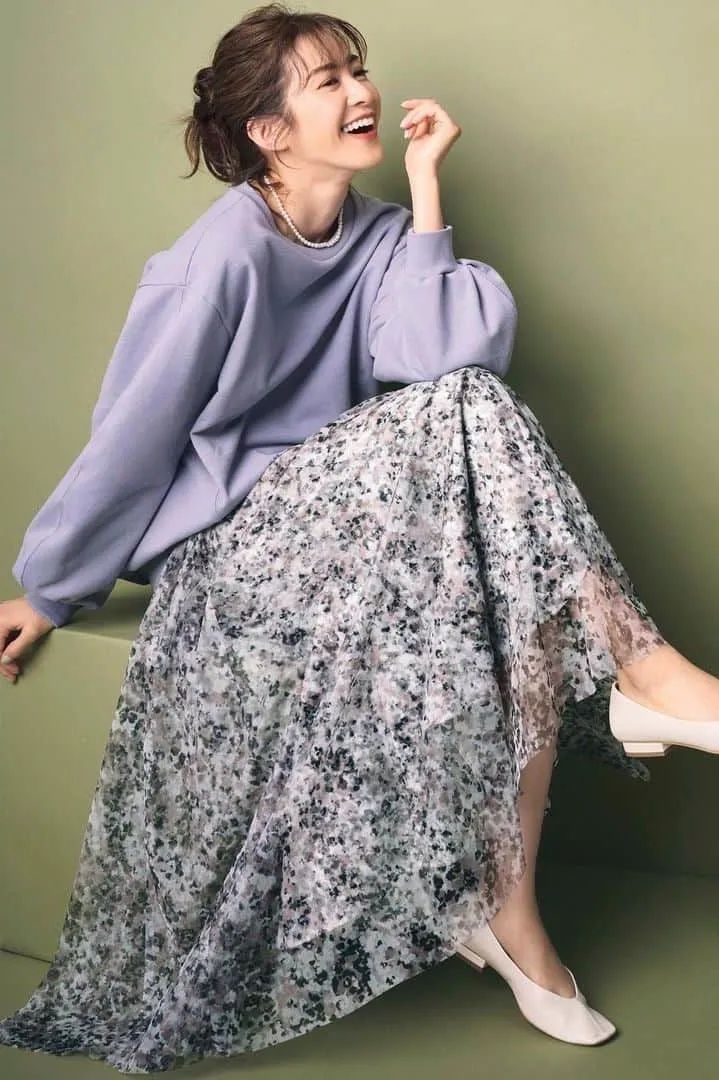 一条融入了印花元素的半裙,犹如一幅行走的艺术画卷,瞬间为穿搭增添了无限风情与格调。搭配一件简约风纯色卫衣,彰显个性。