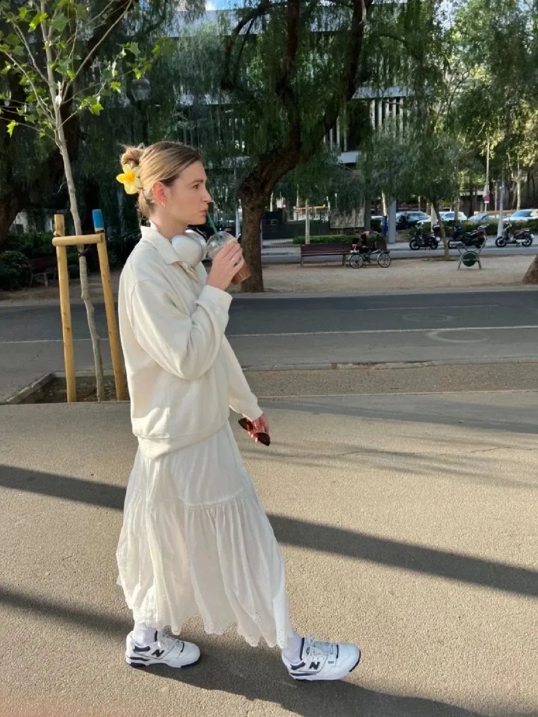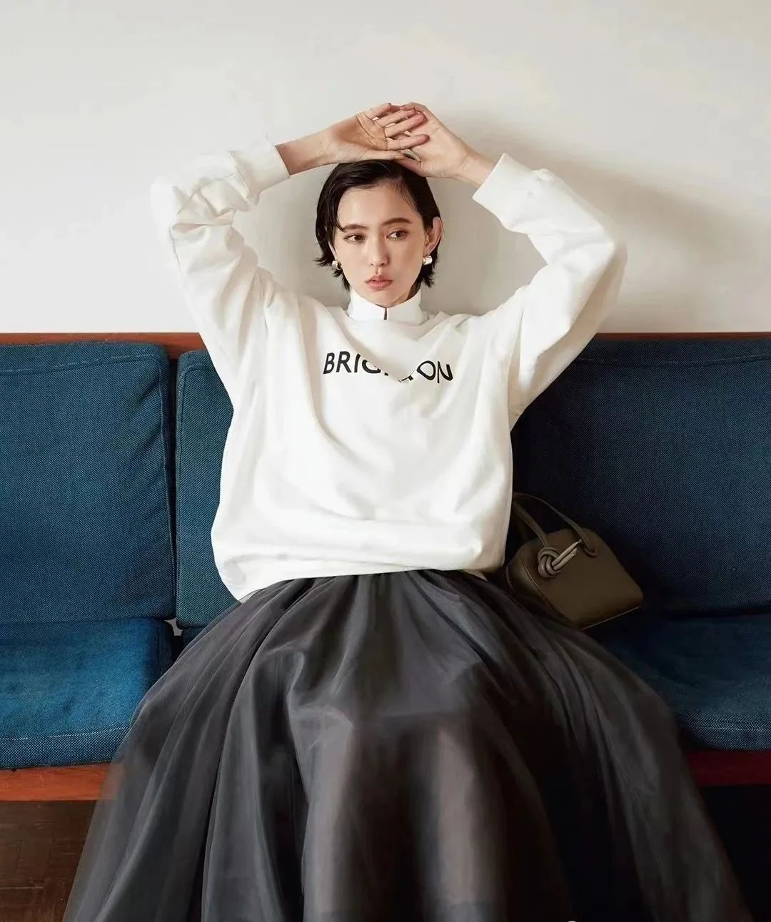 宽松的卫衣搭配宽松的半裙,Oversize与Oversize的碰撞,再配一双运动鞋,仿佛是无拘无束的自由宣言。