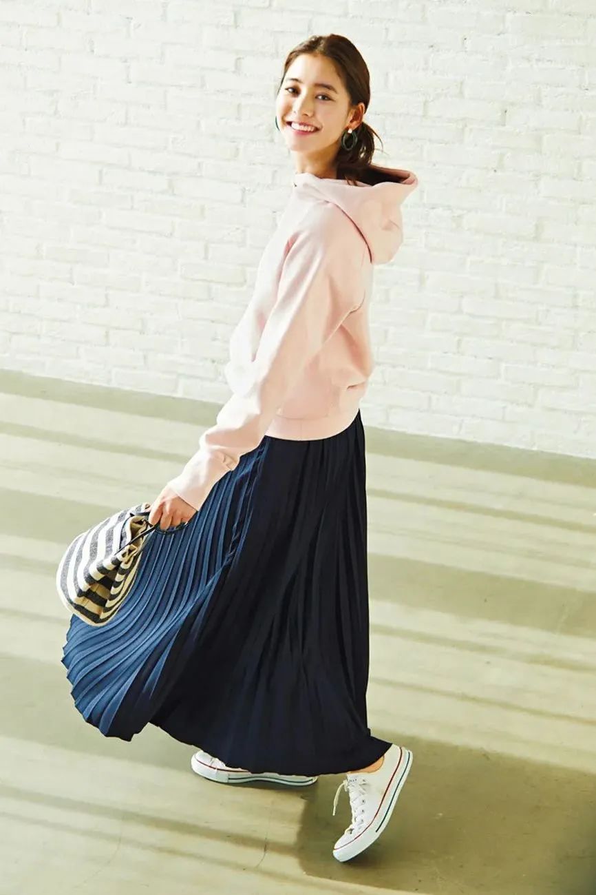 卫衣与裙装的结合,仿佛是一场跨越风格的浪漫邂逅,它们相互交织,共同编织出一幅幅既动感又不失柔美的画面。