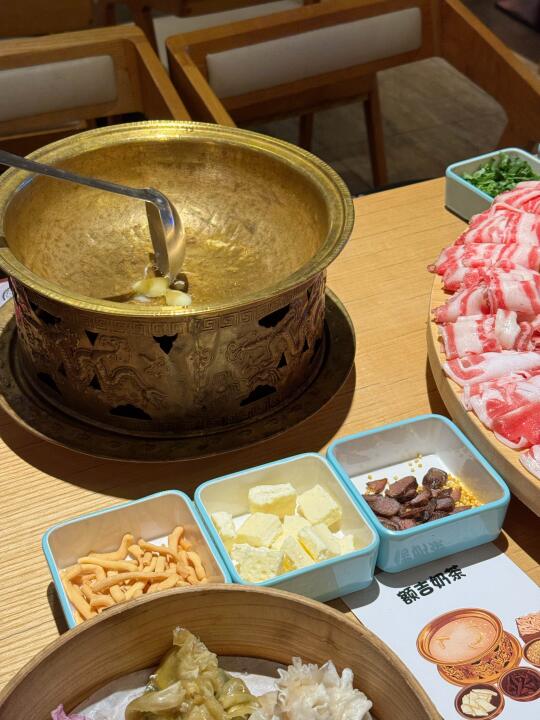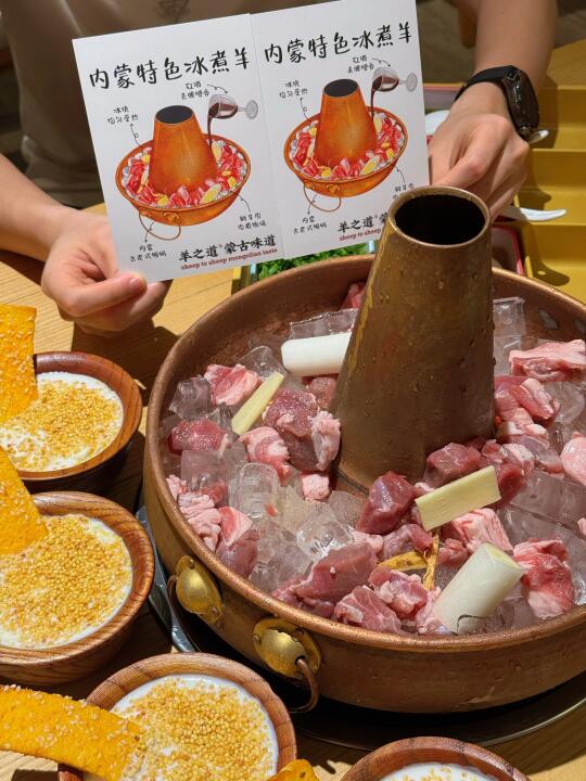 一整个铜锅端上来,冰块🧊➕羊肉🐑