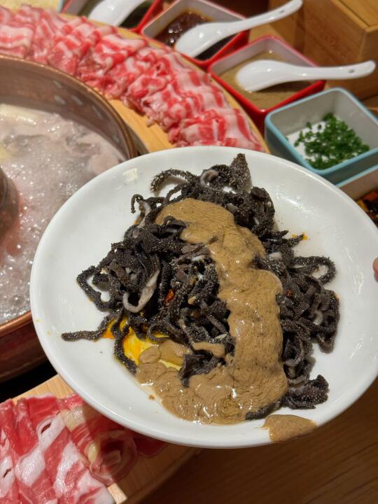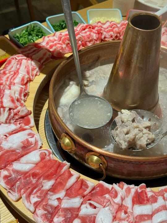 再涮上特色的羊肉卷肥牛卷太阳圈☀️