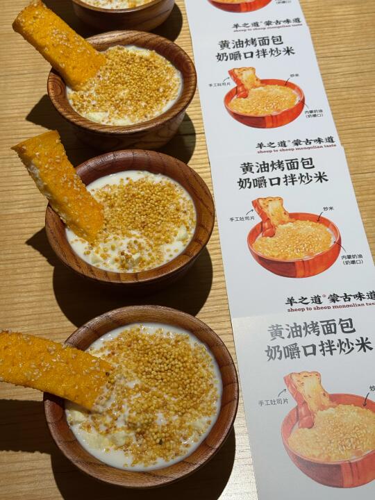 黄油面包很脆口,裹着香香的炒米和酸奶💯
