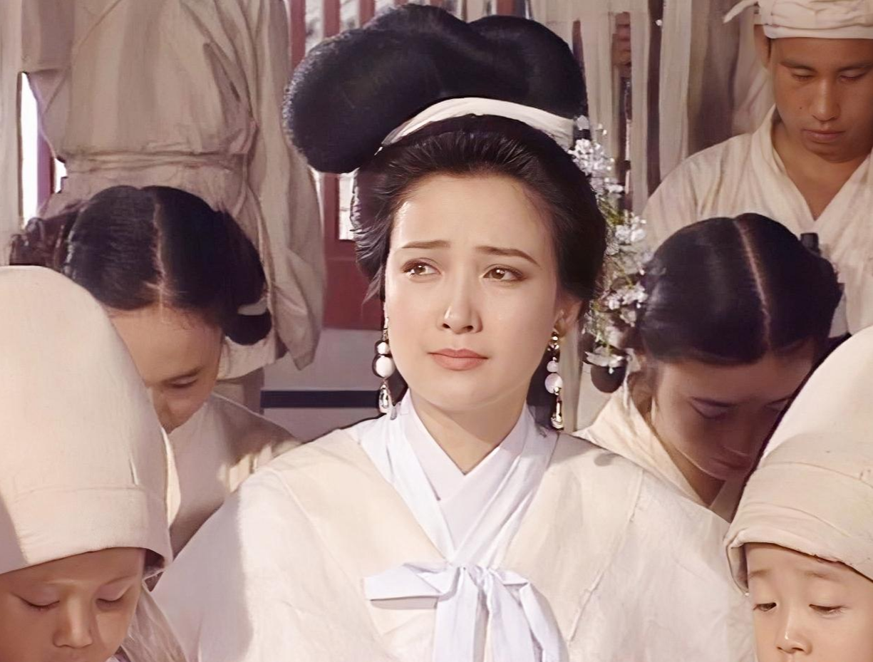 尤其是在周瑜灵堂上穿白色孝服,眼噙泪光,神情悲痛的模样,梨花带雨,我见犹怜。