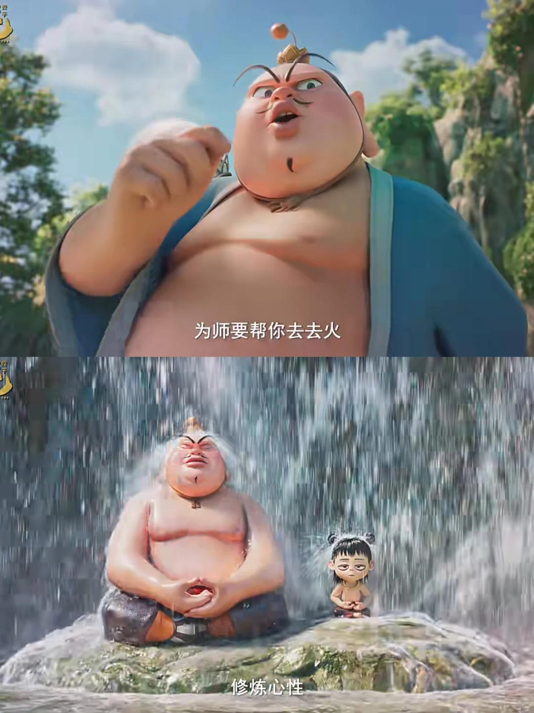 哈哈哈,新发布“哪吒练定力”喜剧短片真的太搞笑了[偷笑R],太乙真人觉得哪吒火气太大定力太差,带着哪吒冲瀑布“物理去火”,修炼定力,结果没想到却惨遭偷家!