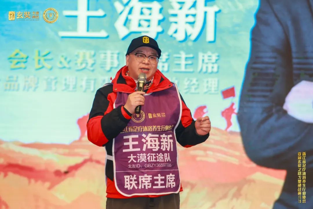 愿四天三夜的征程,让我们洗去浮躁,收获勇气;愿每一步脚印,都成为行业精神的烙印;愿凯旋之日,我们以蜕变之姿,为浙江足疗沐浴养生行业书写新的荣光!最后,预祝活动圆满成功!祝各位勇士征服戈壁,载誉而归!”