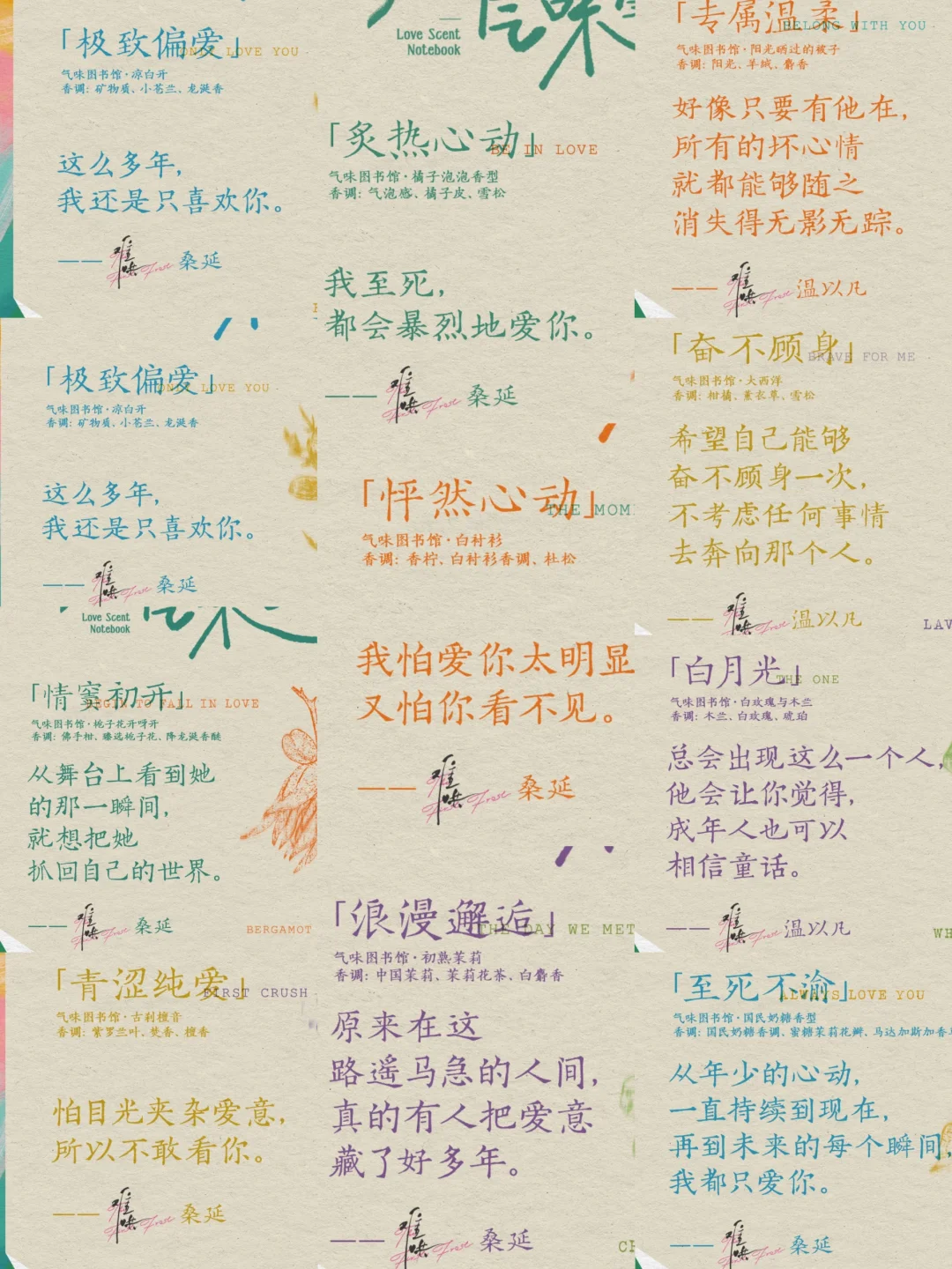 拥有不了“人间妄想”桑延,那总能让我闻一下他的味道吧! 生花剧场跨界联名品「生花爱情气味笔记」真的超有创意,一句《难哄》情话台词对应一种香味[色色R] 闻香就能体会浪漫的爱意氛围,好多香味都超级符合桑延,简直就是男友香,喷了这些香味能感受到在跟桑延恋爱的甜蜜吗[暗中观察R]~
