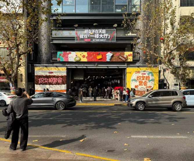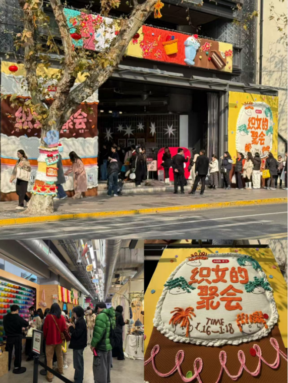 下图:今年1月16日下午笔者拍摄于淮海中路,由小红书举办的“织女的聚会”活动(毛线编织),吸引来了全上海的“织女织男”,据说商场门口的队伍要排2-3个小时。