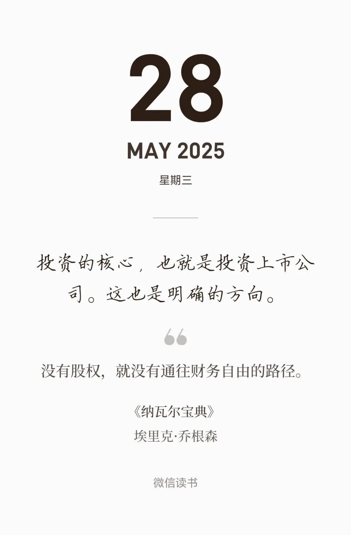 昨夜纳指涨2.47%,纳指100涨2.39%,今日场内ETF平均上涨1%左右。 短期波动是不应该成为影响投资的因素,特别是对于资产,长期的增长和复利效应才是投资者重点关注的。 很多人对“资产”理解其实有很大误区,我们理解的汽车、房子、现金都属于资产,但实际上并非真正意义的资产。 “资产”是指个人、家庭、企业或其他经济主体拥有或控制的、能够带来未来经济利益的资源。 资产是能够带来经济利益的。我们的车子如果租出去获得不断的收益、我们的房子租出去每月有收益才是资产。 你手上有100万但不是资产,是财富,但是如果你存到银行,收益虽低,但也属于资产。你有财富不一定有资产,但是你拥有资产,你的财富就越来越多! 理解“投资的本质”就是不断壮大你拥有的资产,不断给你获得源源不断的利润。 持有纳指100基金,就是手握纳斯达克100家科技公司股票(或股权),拥有100家上市公司的盈利分享权。 《纳瓦尔宝典》中明确讲到,“没有股权,就没有通往财务自由的路径”。