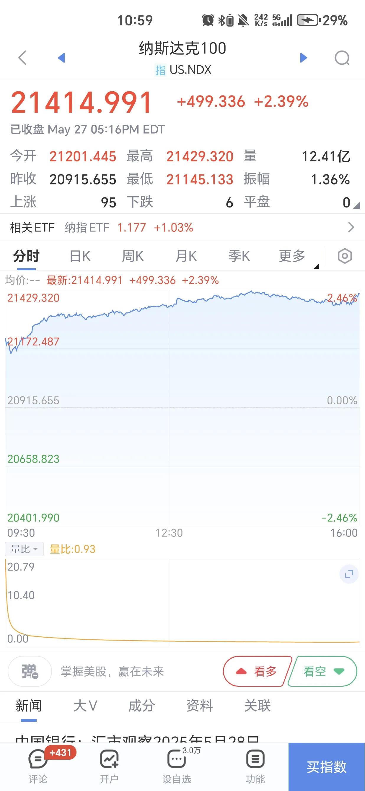 昨夜纳指涨2.47%,纳指100涨2.39%,今日场内ETF平均上涨1%左右。